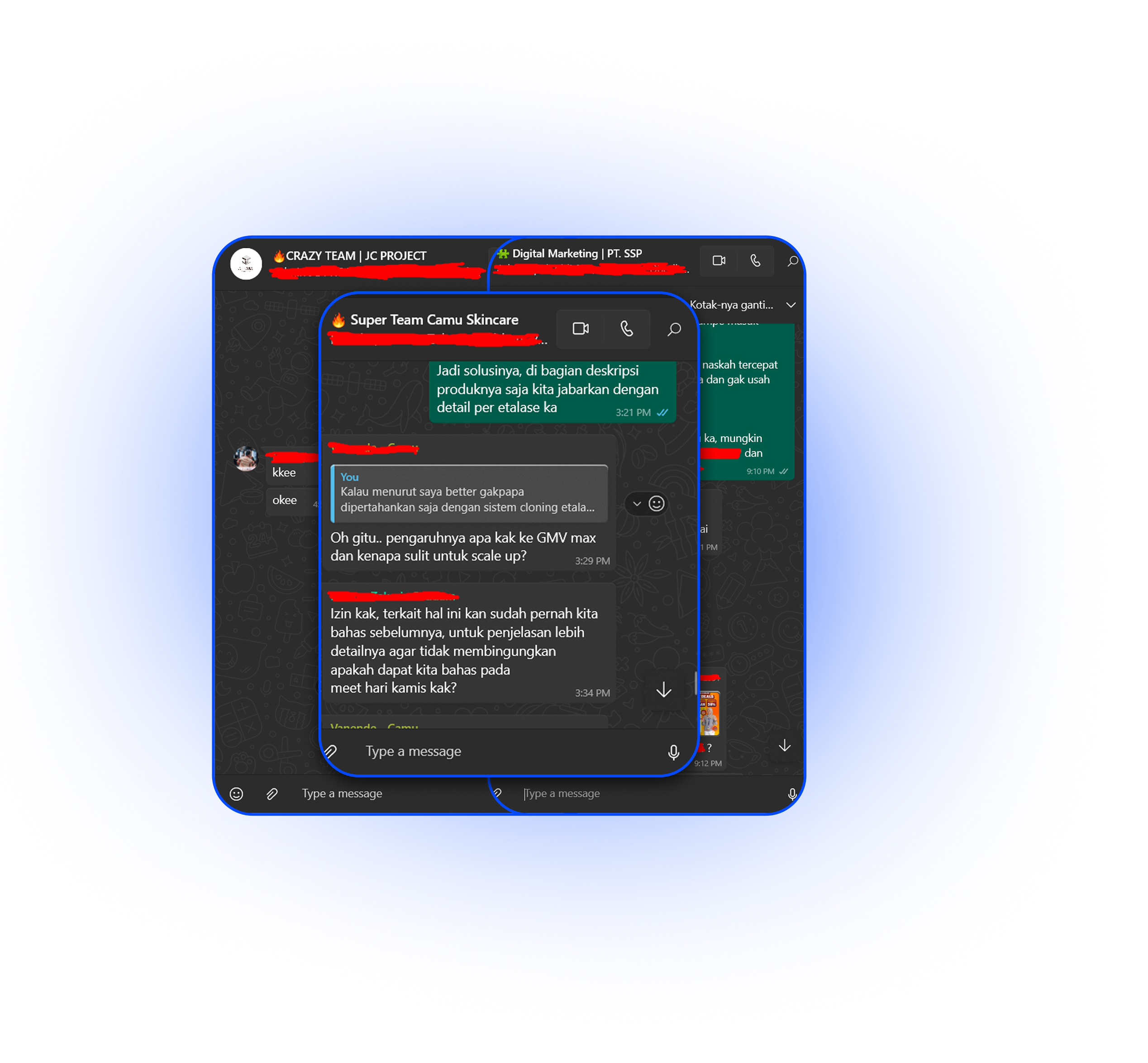 Update rutin, report jelas, dan komunikasi dua arah. Biar Anda tahu apa yang sedang kami kerjakan